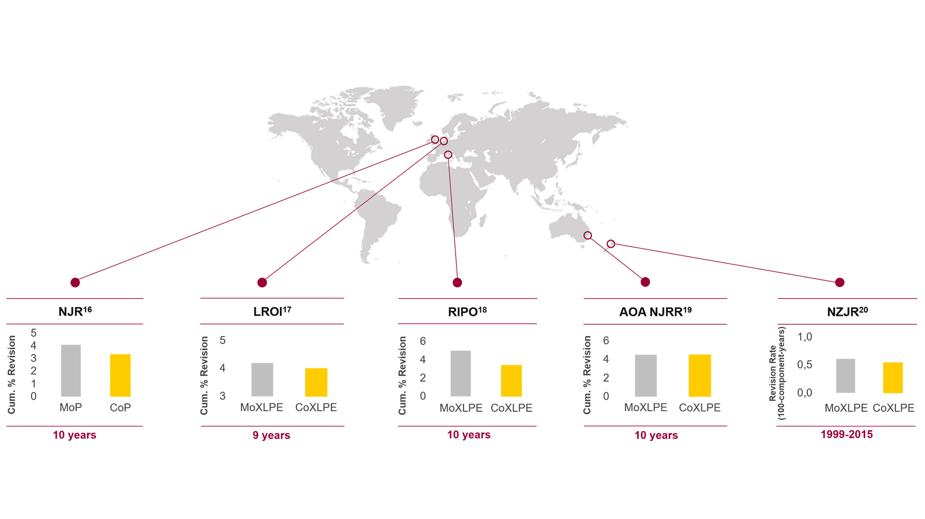 Die internationalen Endoprothesenregister verzeichnen einen wachsenden Trend bei der Nutzung von Keramikkomponenten in der primären Hüftversorgung. Der Einsatz keramischer Komponenten wird als vernünftig im Rahmen dieser Versorgung betrachtet. Schon seit mehreren Jahrzehnten bevorzugt die Mehrheit der Chirurgen in Italien, Deutschland, Frankreich oder Korea Keramik bei der Behandlung ihrer Patienten. In anderen Ländern, wie den USA oder dem Vereinigten Königreich, führten die vor einigen Jahren (wieder) aufgetretenen Probleme und Bedenken im Zusammenhang mit Fretting- bzw. Reibkorrosion dazu, vermehrt Keramik- anstelle von CoCr-Köpfen zu verwenden.2-9