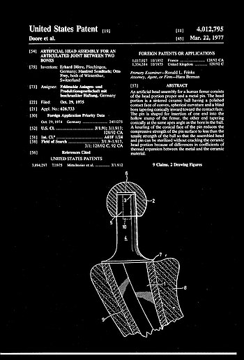 Their goal was to create a safe and sustainable fixation between a ceramic femoral head and a metal stem. Special emphasis was placed on the force-fit connection, known as taper locking, by Dörre et al. The first patient application of a hip arthroplasty using taper fixation occurred in 1974, a method secured by a German patent (DE2548077B2).