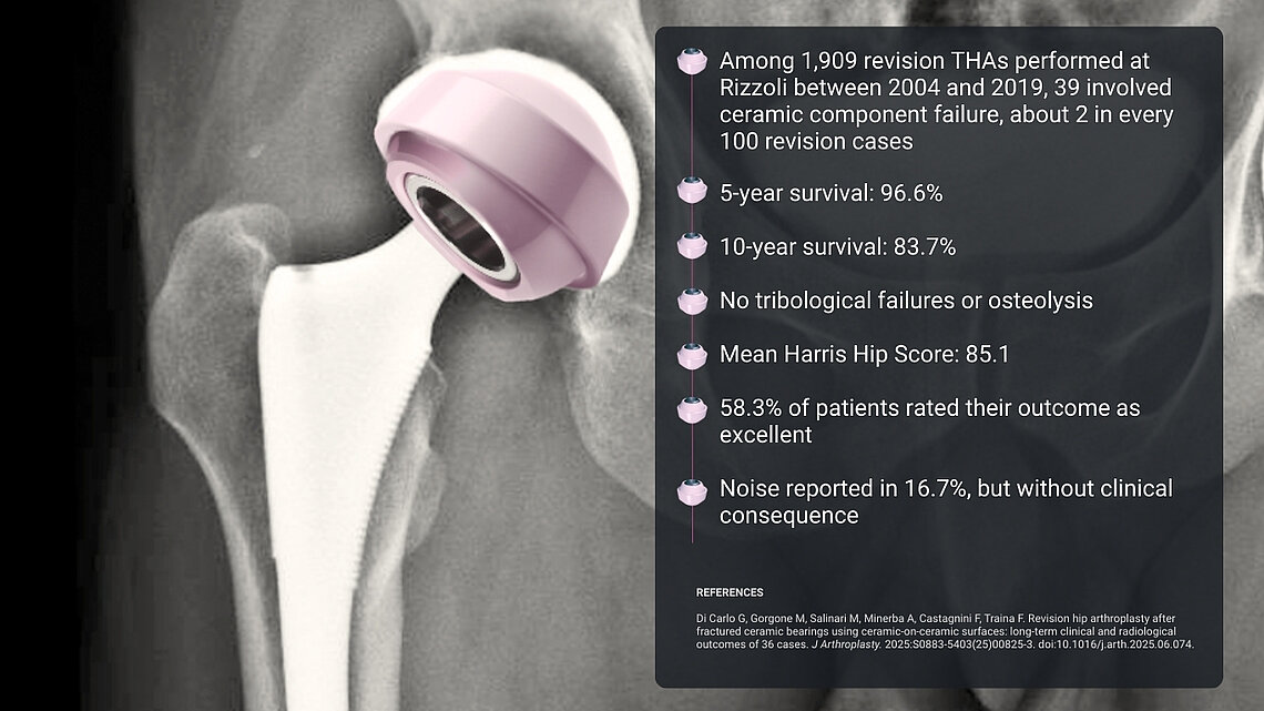 Castagnini et al. confirm that ceramic-on-ceramic revision – when performed with attention to component selection, taper condition, and intraoperative debridement – can achieve strong long-term outcomes after ceramic fracture.