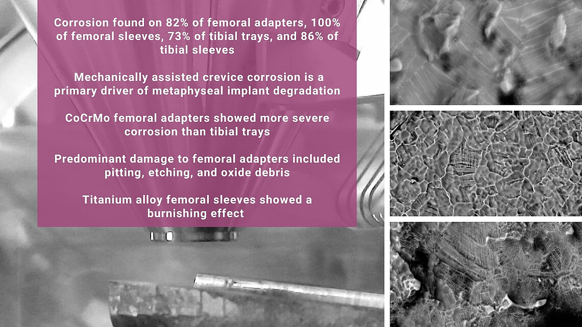 Aslani S, Kurtz MA, Pelt CE, et al. Crevice Corrosion Degrades Metaphyseal Sleeves Following Total Knee Arthroplasty: A Retrieval Study. J Arthroplasty. Published online June 4, 2025. doi:10.1016/j.arth.2025.05.118