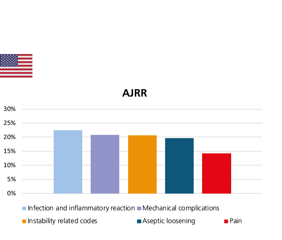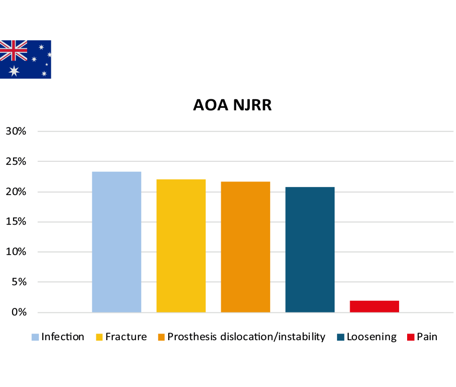 With regard to the most common reasons for revision, the terminologies used in the national registries varies slightly. There are also some differences between countries in the ordering of the main reasons. (Aseptic) loosening, infection, dislocation and (periprosthetic) fractures were at the top of the list, although with the order varied.