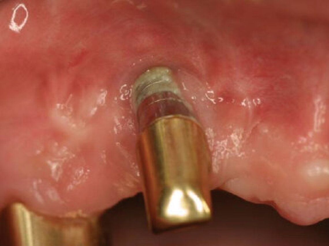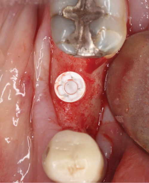 Recently, ceramic implants were introduced as alternative strategy with the aim of preventing the development of peri-implantitis and bone loss (Fig. 6). Compared to titanium implants, studies show that zirconia implants are associated with lower plaque and bleeding scores.15-17 Ceramic implants offer high resistance to corrosion, better peri-implant soft tissue conditions and less inflammation as well as lower oral biofilm adhesion. Apart from the excellent mid-term clinical outcomes, such as a high cumulative survival rate and a low level of average crestal bone loss, zirconia implants contribute to the aesthetics of dental restoration. The white color of zirconia comes close to that of natural teeth.15,18 If the long-term clinical results of ceramic implants are confirmed to be equal to or better than the metal alternative, there is potential for a general switch to ceramics in the future.