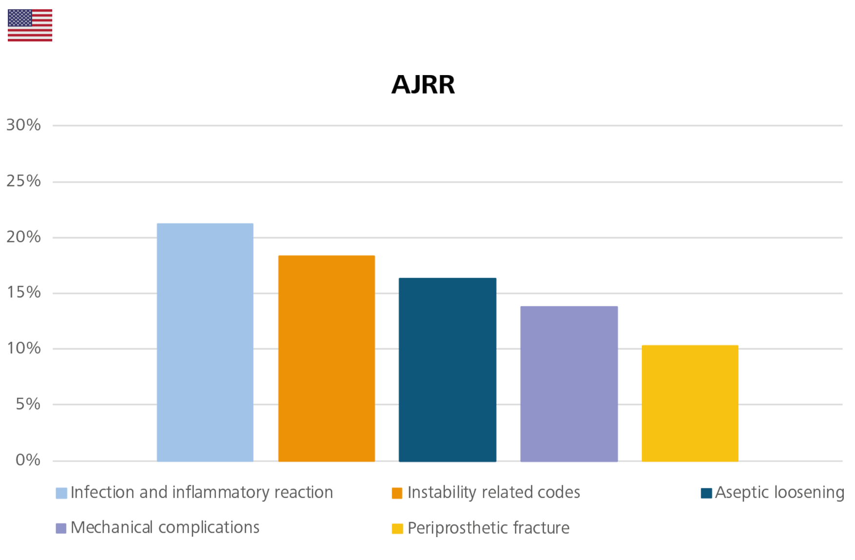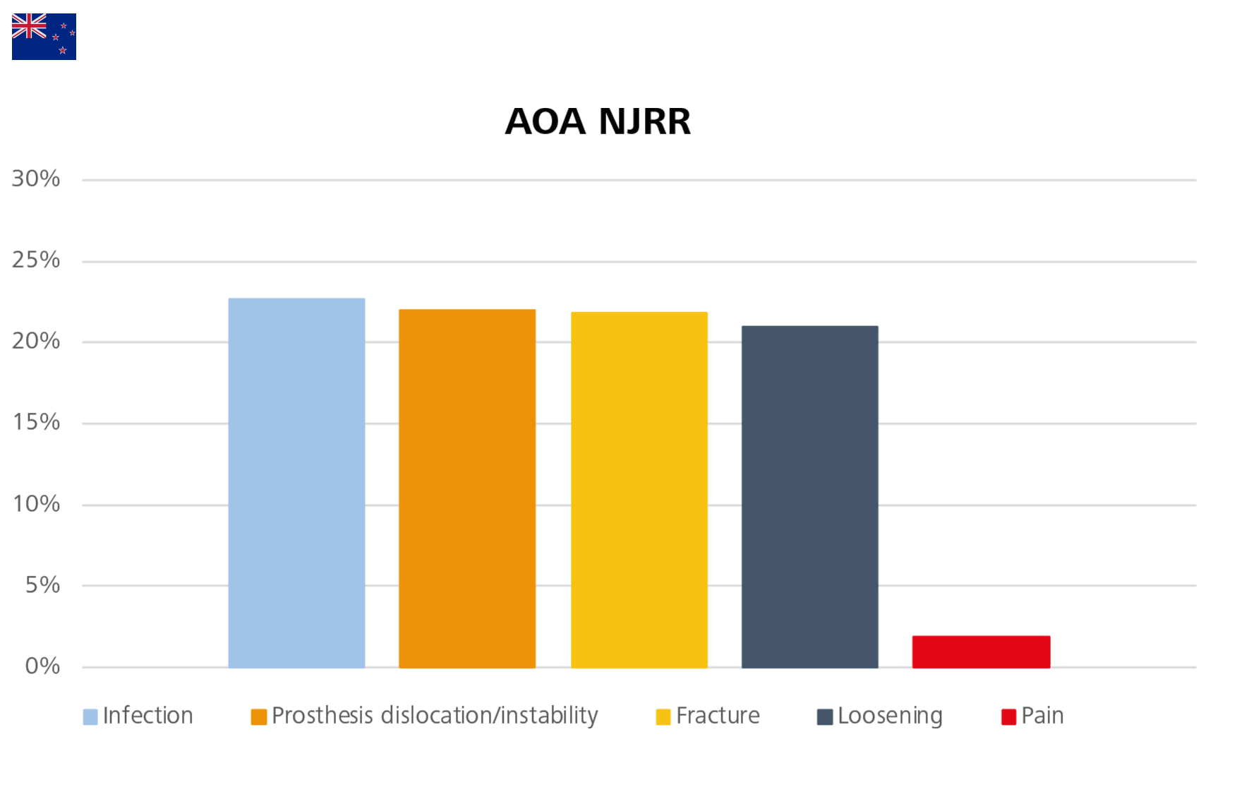 he national registries use slightly different terminology when identifying reasons for revision. There are also some differences in the ranking systems of the reasons for revision between countries. However, (aseptic) loosening, infection, dislocation and (periprosthetic) fractures are found at the top of these lists in varying orders.