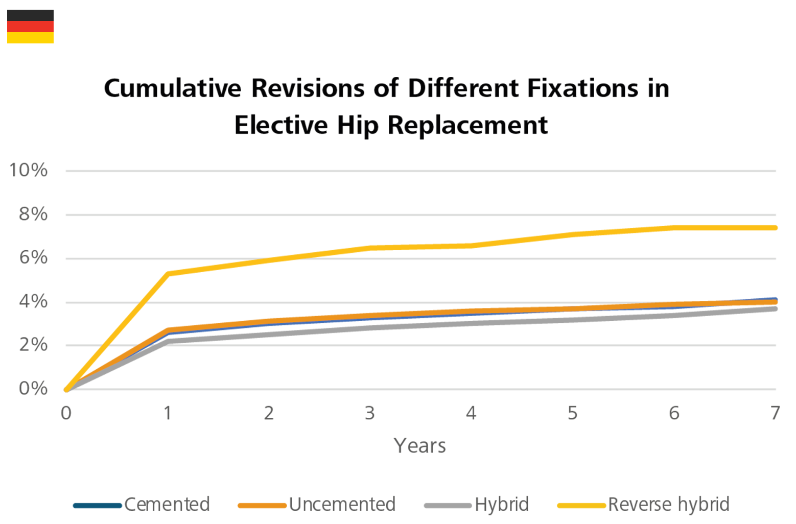 Figure 21: Cumulative revision rates of different fixations in elective hip replacement in Germany.